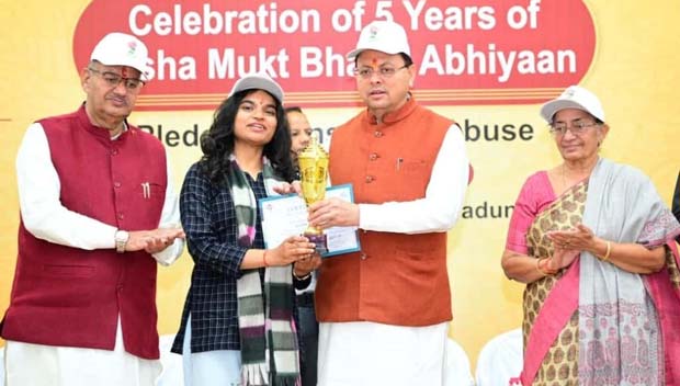 मुख्यमंत्री पुष्कर सिंह धामी आज नशामुक्त भारत अभियान के पांच वर्ष पूर्ण होने के अवसर पर आयोजित कार्यक्रम में शामिल हुए। उन्होंने युवाओं से अपील की कि वो स्वयं भी नशे को पूरी मजबूती के साथ ना कहें, साथ ही अपने साथियों को भी नशे के लिए ना कहने के लिए प्रेरित करें।