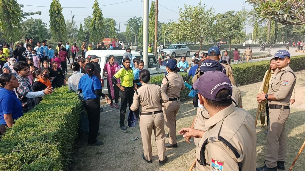 सिडकुल पंतनगर में श्रमिकों का उग्र प्रदर्शन, पुलिस बल प्रयोग से कई घायल और बेहोश
